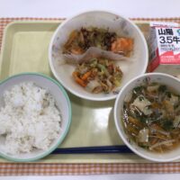 令和7年11月26日の給食 ごはん 牛乳 さけのちゃんちゃん焼き はくさいのおかかあえ ゆば入りすまし汁 さけのちゃんちゃん焼きは、北海道の漁師町で作られる郷土料理として有名です。「ちゃんちゃん」の意味を調べてみると、お …