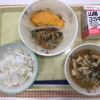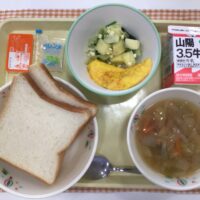 令和7年11月6日の給食 【本から出てきたメニュー】 米粉食パン 牛乳 オムレツ ぐりぐらサラダ コンソメスープ マーマレード&マーガリン 10月27日から11月9日は読書週間です。今年も本から出てきたメニューをたくさん …