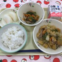 令和7年10月7日の給食 ごはん 牛乳 高野豆腐とキャベツの甘辛炒め 青菜としめじの和え物 なし 今日のおかずは、高野豆腐を水でもどして、片栗粉をつけて油で揚げた物をキャベツなどと甘辛く味付けしています。油で揚げて煮る調 …