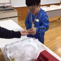 12月9日、自分が欲しいお菓子を選んで買う買い物学習をしました。 子どもたちは、目を輝かせてお目当てのお菓子を手に取り、うれしそうにレジに持っていきました。 模擬銭を払って、レシートを受け取り、買ったものを大切に教室まで …