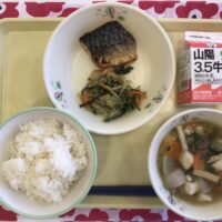 令和8年1月14日の給食 ごはん 牛乳 さばの塩焼き 水菜のあえ物 けんちん汁 みなさん、おいしく給食を食べていますか。給食はみなさんの体に必要な栄養素がバランスよくとれるように考えられています。でも、好き嫌いで食べ残し …