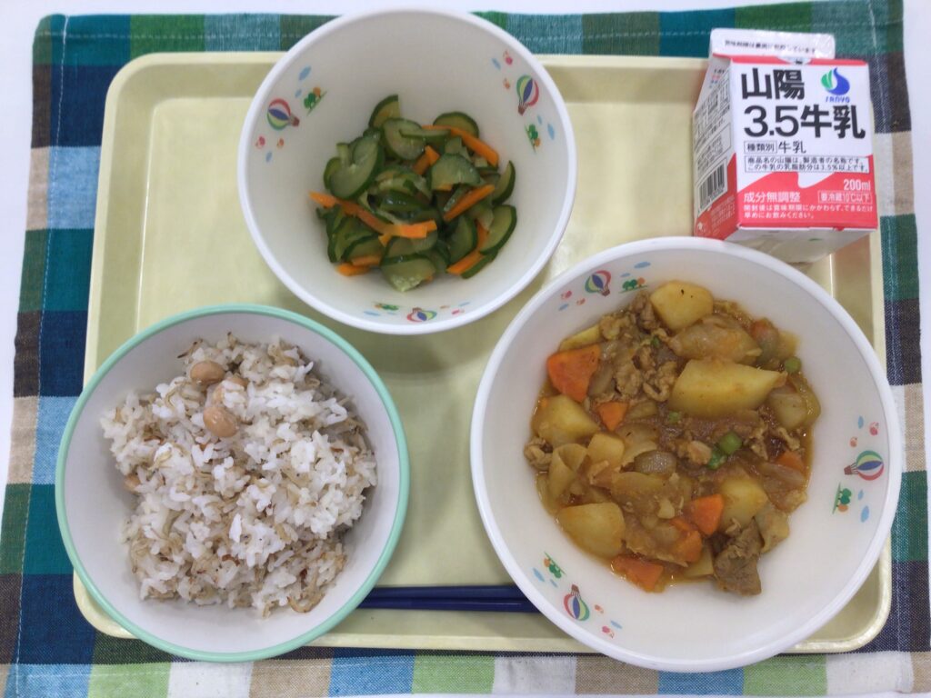 ごまじゃこごはん 牛乳 じゃがいものカレー煮 ピリ辛きゅうり