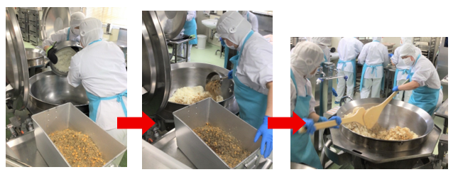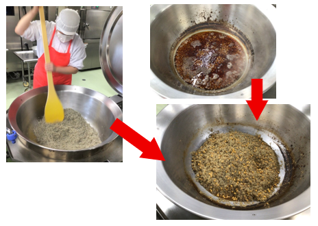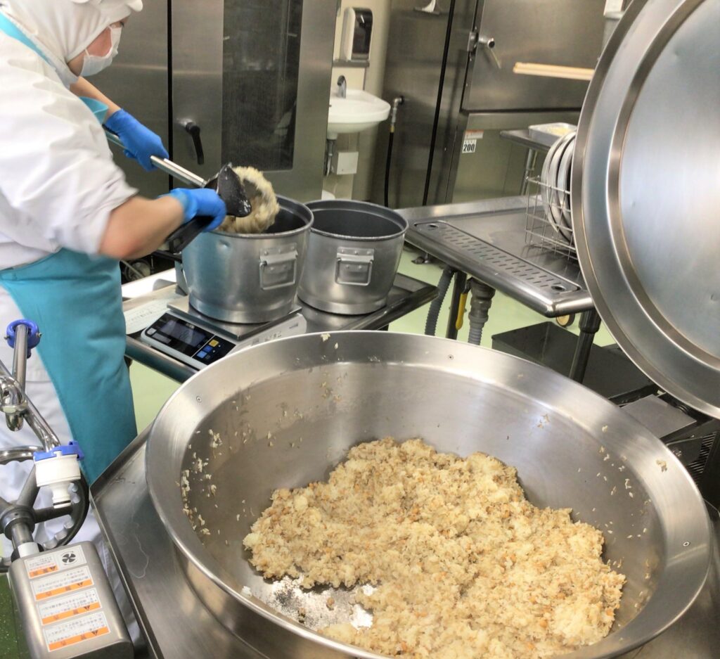 今日のごまじゃこごはんは、給食室で白ごはんと具を混ぜ合わせて作りました。