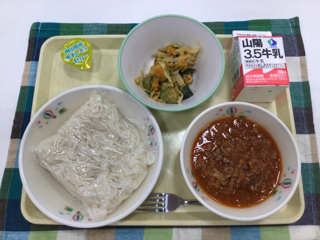 ボロネーゼ 牛乳 かぼちゃサラダ 一口ゼリー(ゆずレモン)