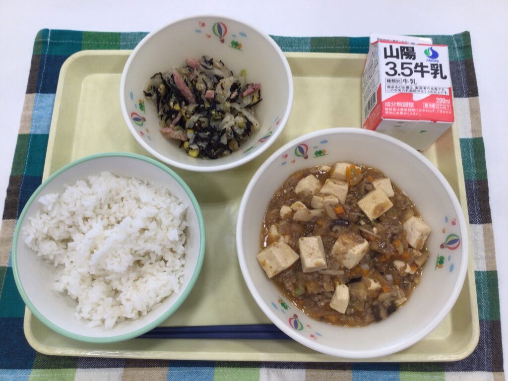 ごはん 牛乳 きのこ入りマーボー豆腐 ひじき入り中華サラダ