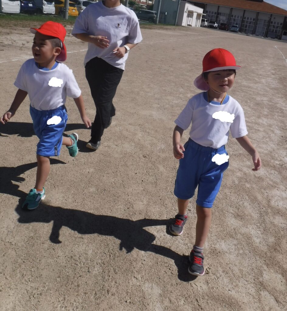 涼しくなってきて、最近は運動場で朝運動をしています。