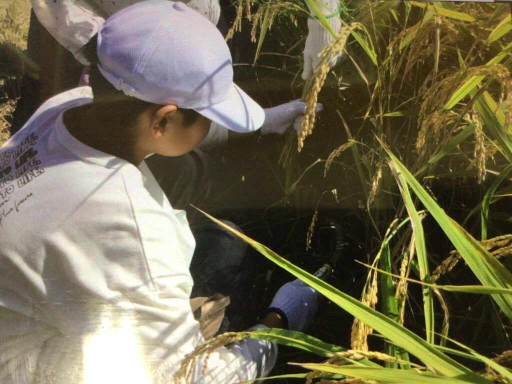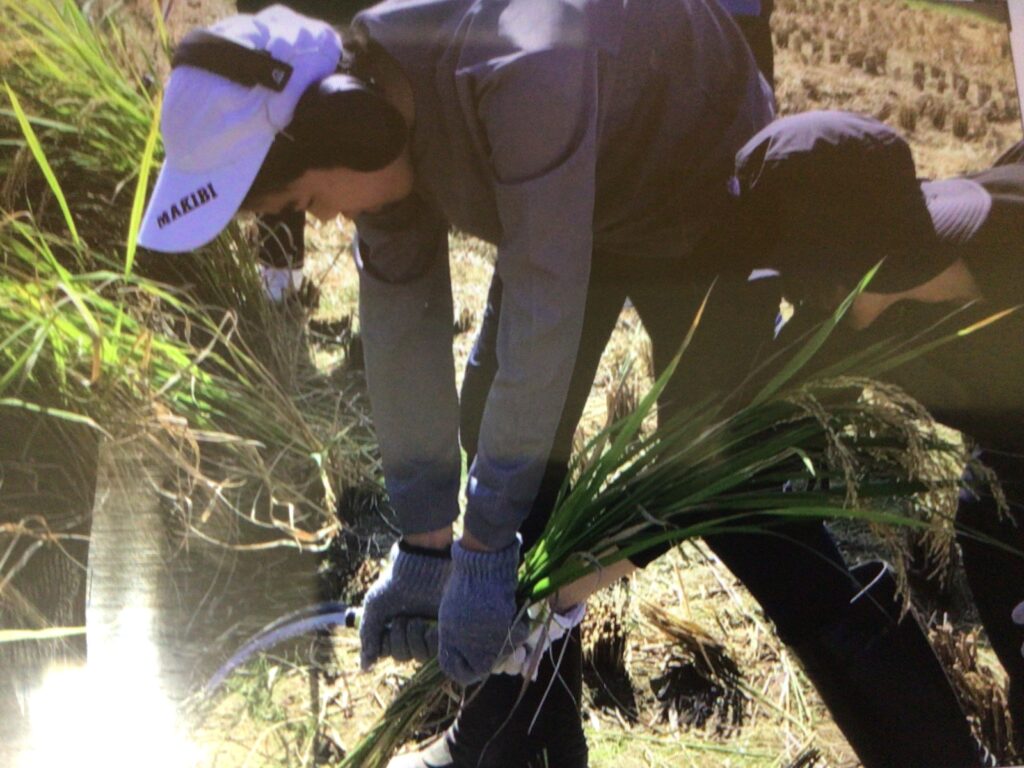 コツを掴むと、一人で刈ることができている生徒もいました。全ての稲を刈り切って地域の方に「みんなが一生懸命刈ってくれて終わりました!」と言って頂き達成感がありました!