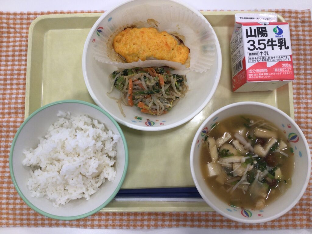 ごはん 牛乳 さわらのもみじ焼き ごまあえ きのこ汁