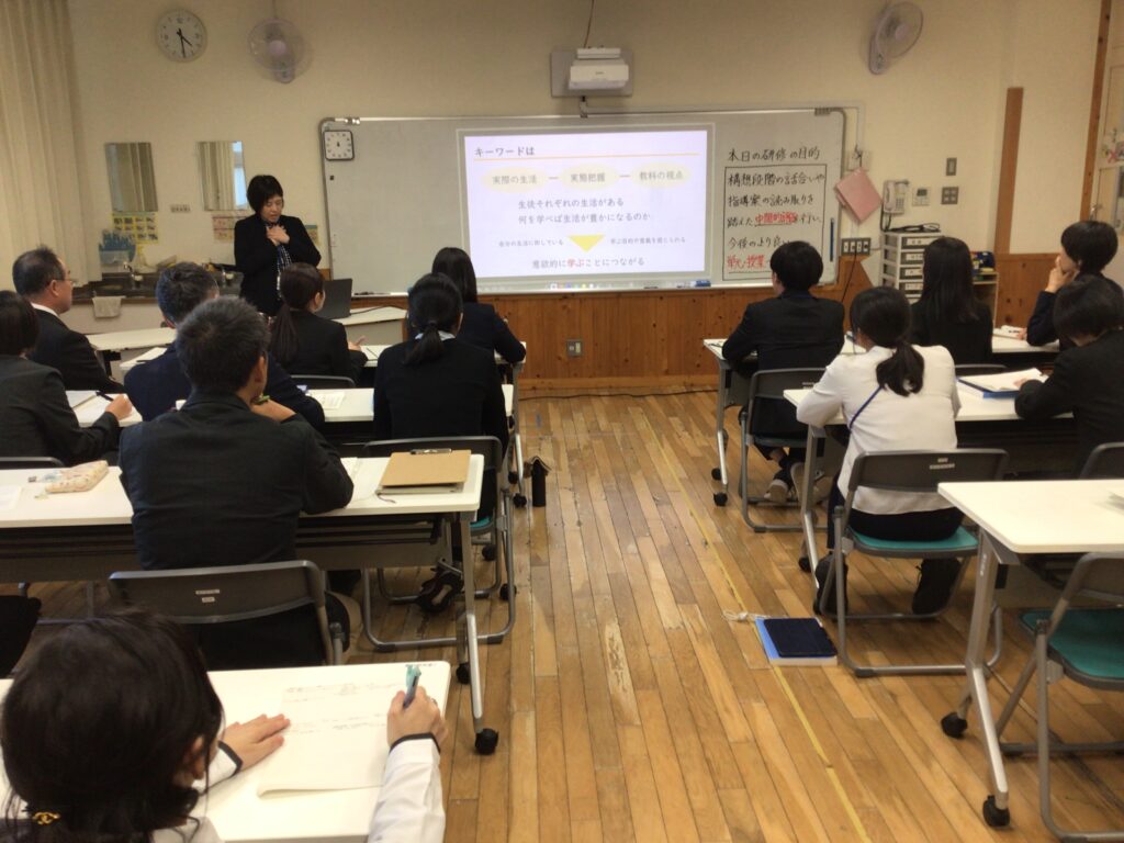 授業後には、岡山県総合教育センターの先生に講師としてお越しいただき、研修を行いました。