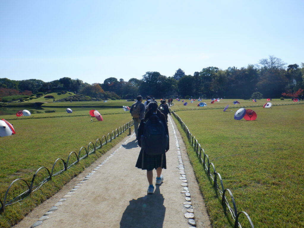 岡山駅に集合し、グループ別に公共の交通機関を利用して後楽園まで移動しました。そこからは各グループで相談して決めていた行程のもと活動し、見聞を深めています。来年の修学旅行を見据え、岡山駅での新幹線ホーム見学も行っています。