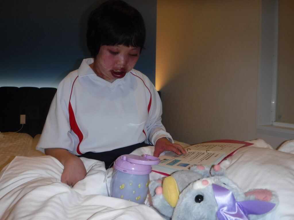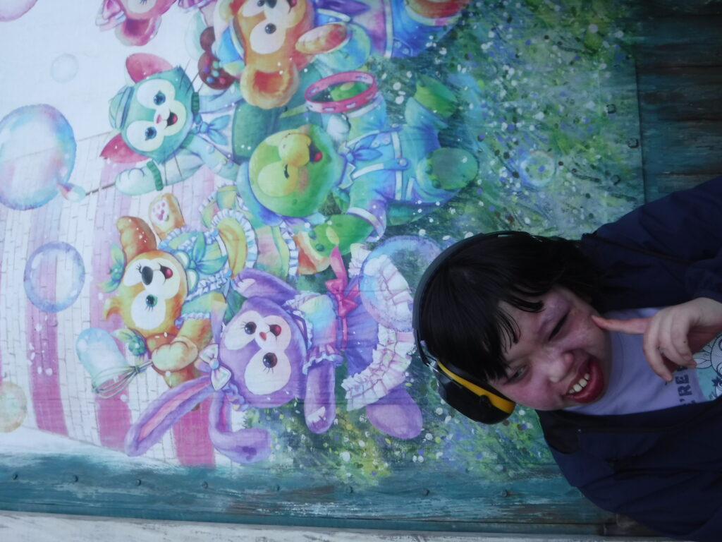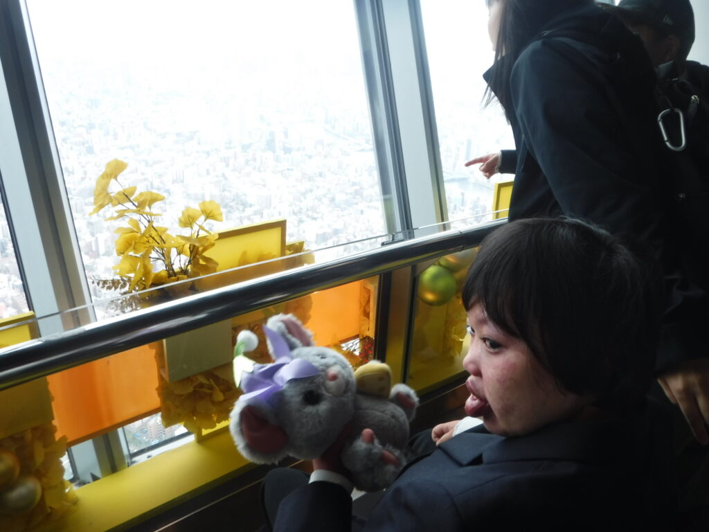 最終日は東京スカイツリーに行きました。お気に入りのディズニーシーで購入したぬいぐるみと一緒に東京の景色を眺めました。