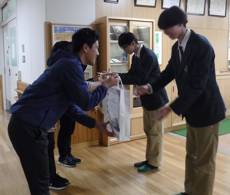 11月13日に関西高校の電気系製作研究同好会の生徒2名と顧問の先生が来校し、本校から依頼していたラッチアンドタイマーとリモコンリレーを製作して届けて下さいました。電気系製作研究同好会の皆様ありがとうございました。大切に使わさせていただきます!