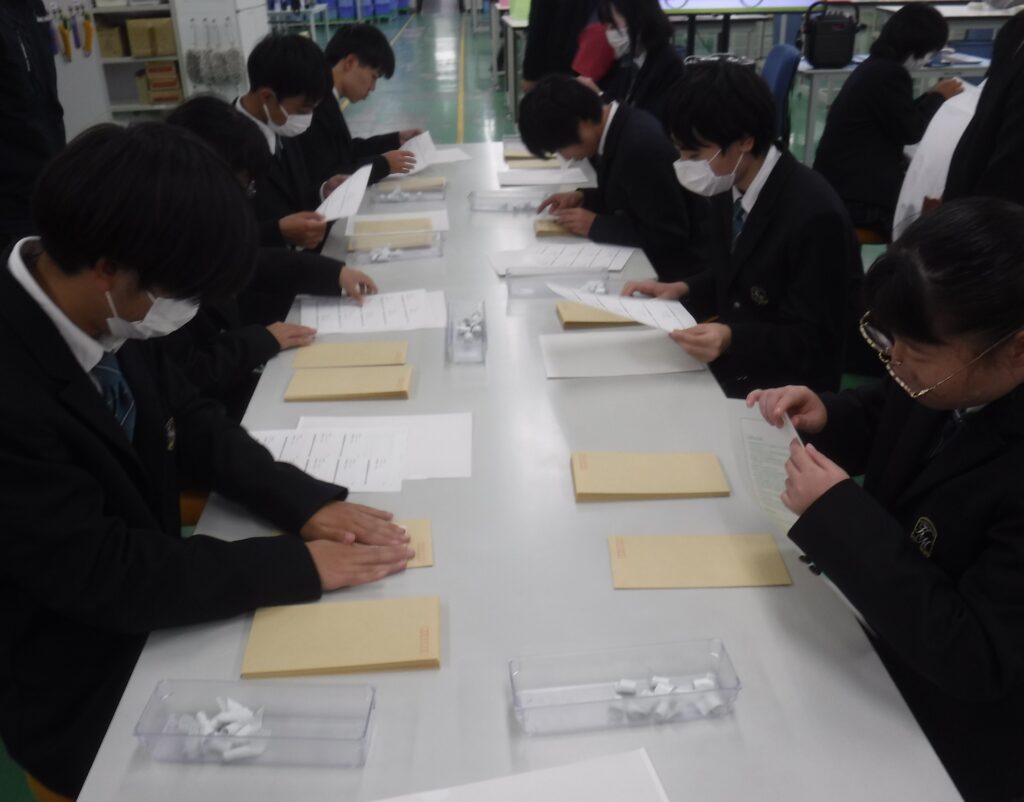 1日目の午前中は株式会社サンクルールで事業所見学をして、働くために必要な力についての講話を受けたり、作業体験をしたりしました。その後、班に分かれて岡山市内を観光したり、3年に1度開催される岡山国際芸術祭で現代美術の鑑賞をしたりしました。