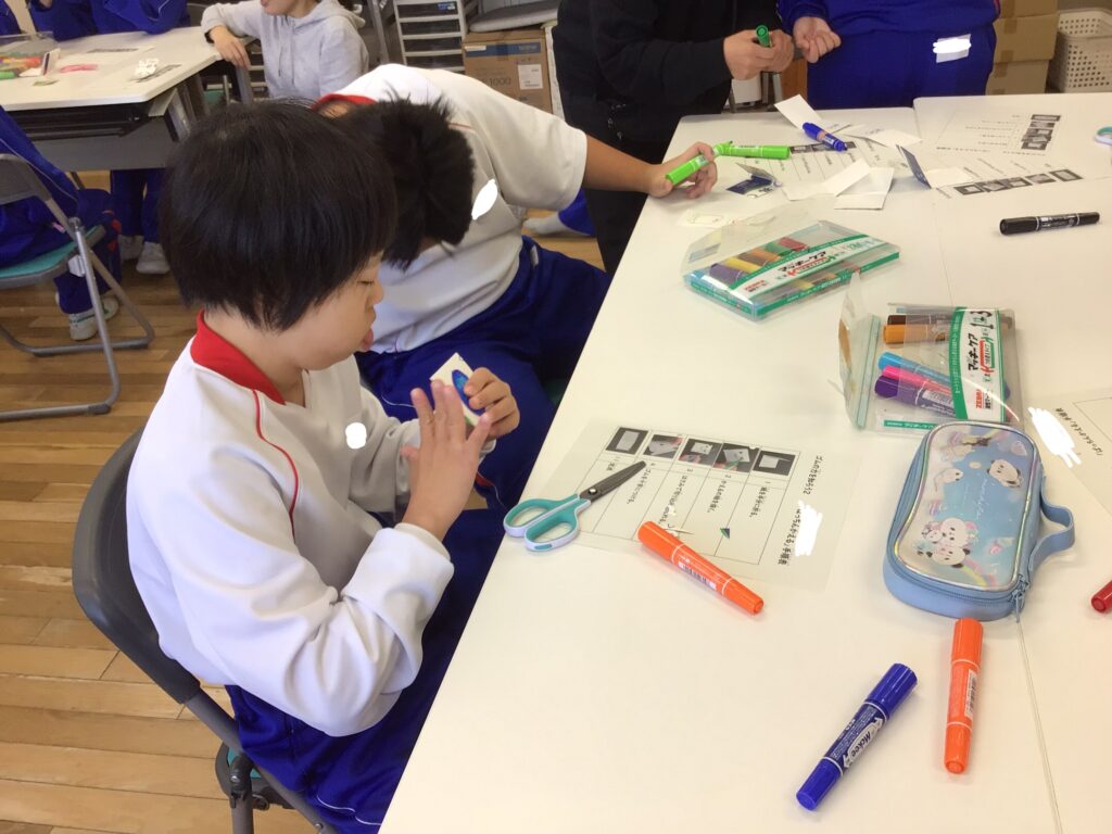 生活単元学習でゴムの力についての勉強でパッチンガエルを作りました。高くとばそうとゴムの掛け方を工夫し試行錯誤しながら作りました。伸びたゴムが縮むと、物がとぶことを学習しました。