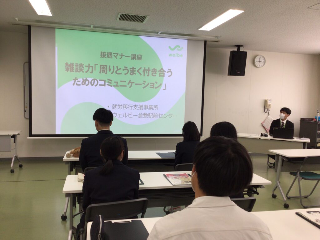 11月10日(月)に外部講師として就労移行支援事業所の「ウェルビー」様、「りたりこ倉敷」様、「ハートスイッチ」様、「ふじ園」様をお招きして、キャリアアップ講座を行いました。