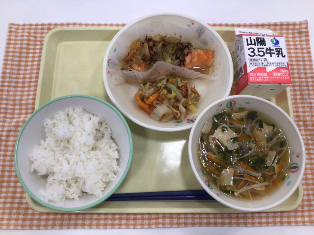 ごはん 牛乳 さけのちゃんちゃん焼き はくさいのおかかあえ ゆば入りすまし汁