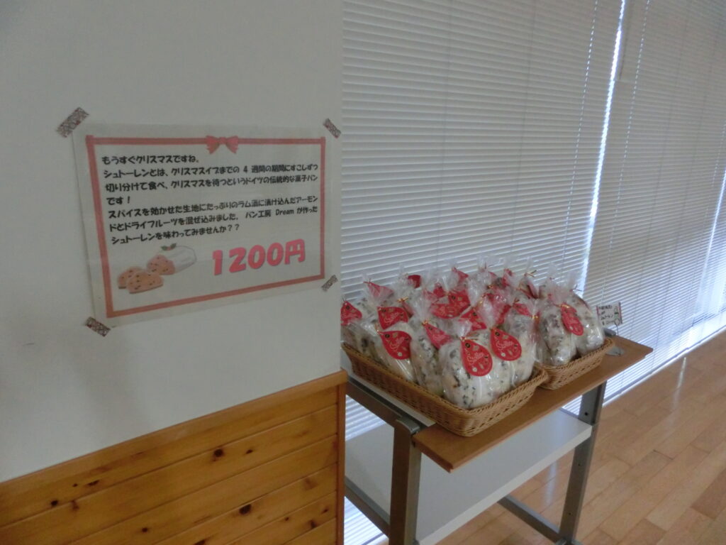 クリスマスが近づいてきましたので、職員に大人気のシュトーレンも数本限定で販売いたします。