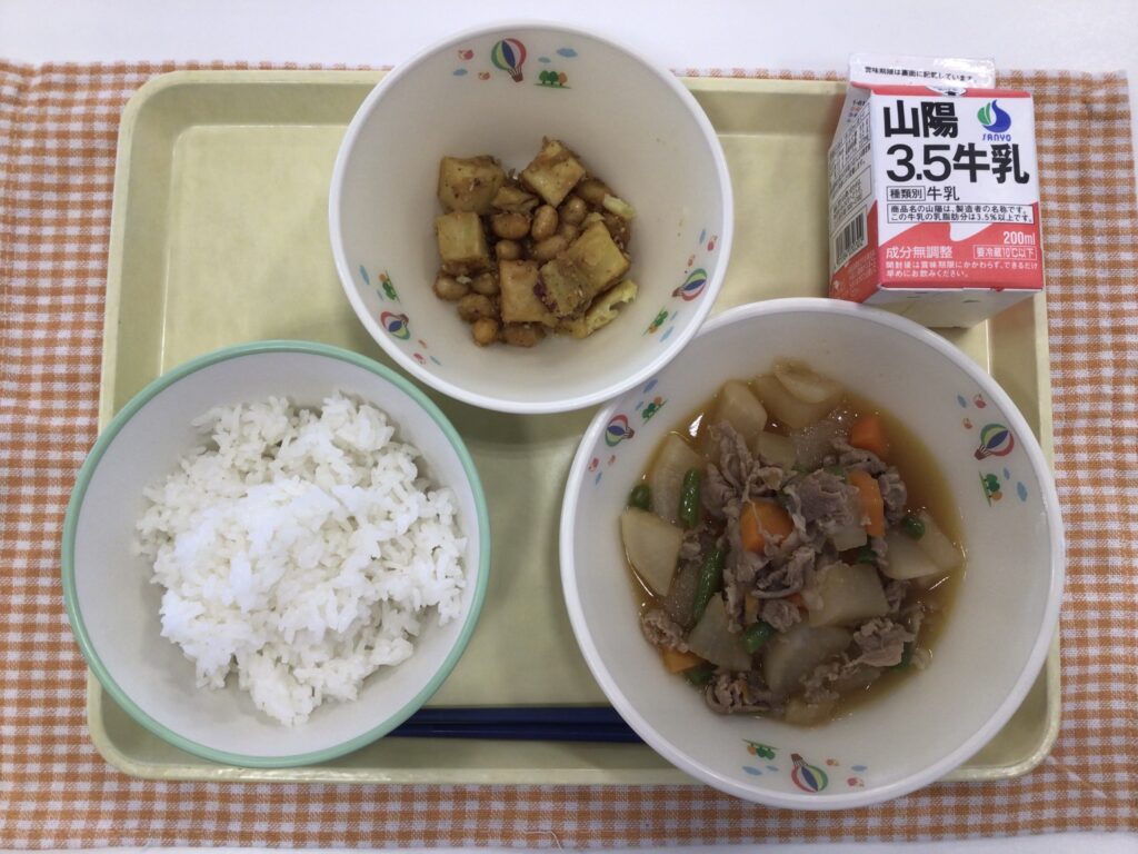 ごはん 牛乳 大根のオイスターソース煮 さつまいもの中華和え