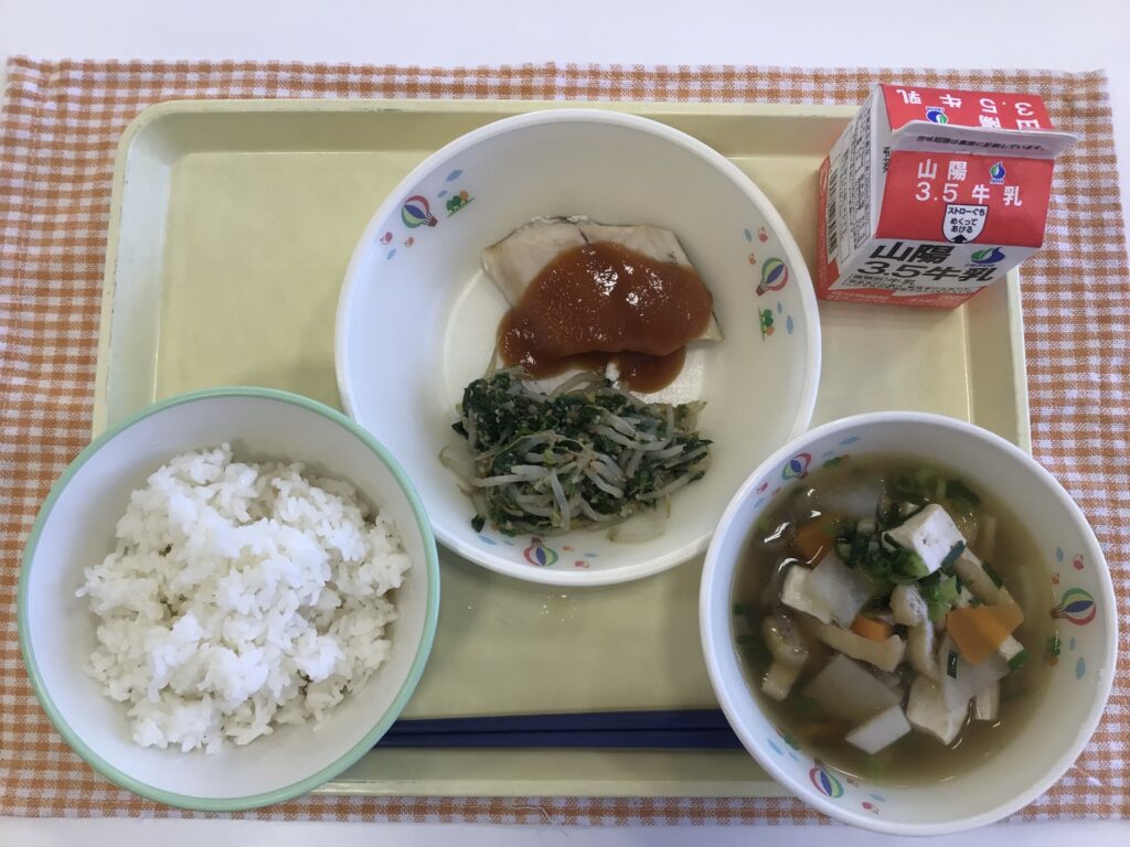 ごはん 牛乳 さわらのゆずみそかけ ほうれんそうのごまあえ けんちん汁