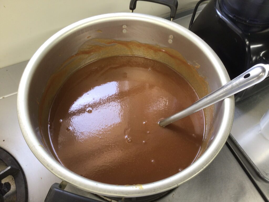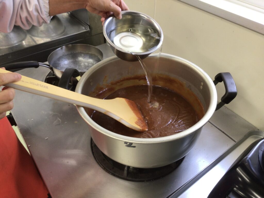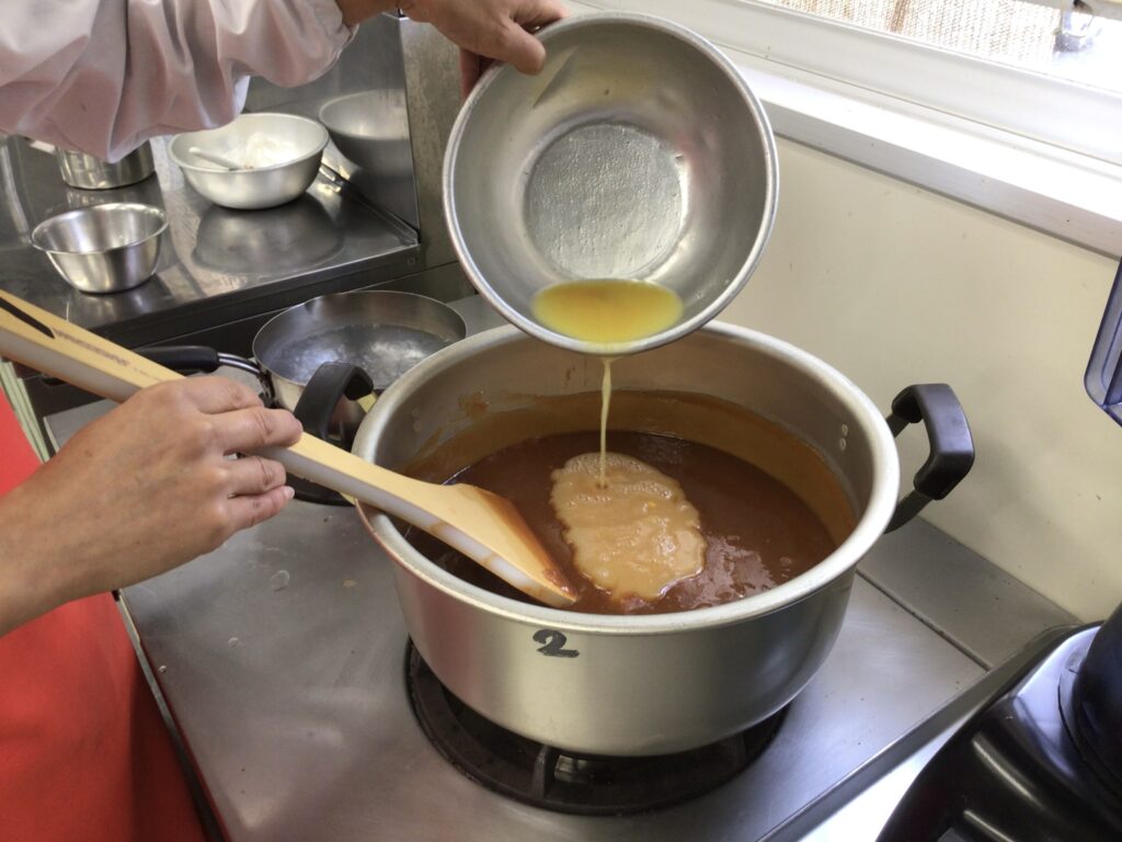 砂糖とみそを鍋に入れてなじませた後、酒を加えて加熱します。少し煮詰めた後、最後にゆずの皮をすりおろしたものと果汁を加えて、ゆずみそのたれを作ります。
