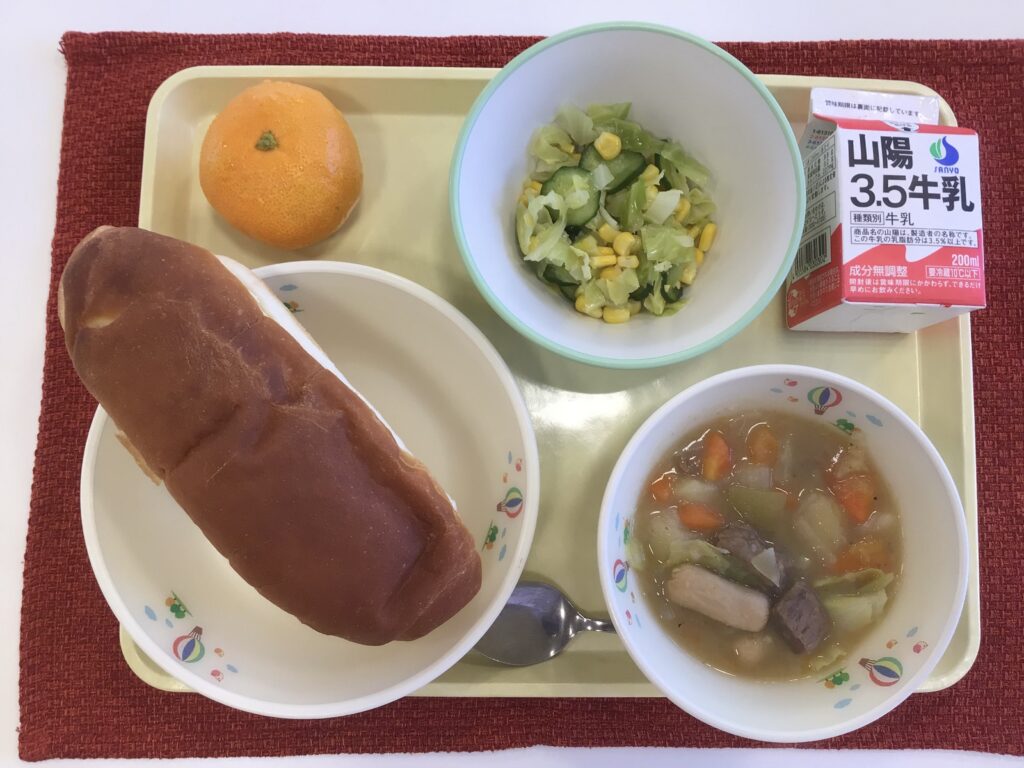 米粉パン 牛乳 ポトフ フレンチサラダ みかん