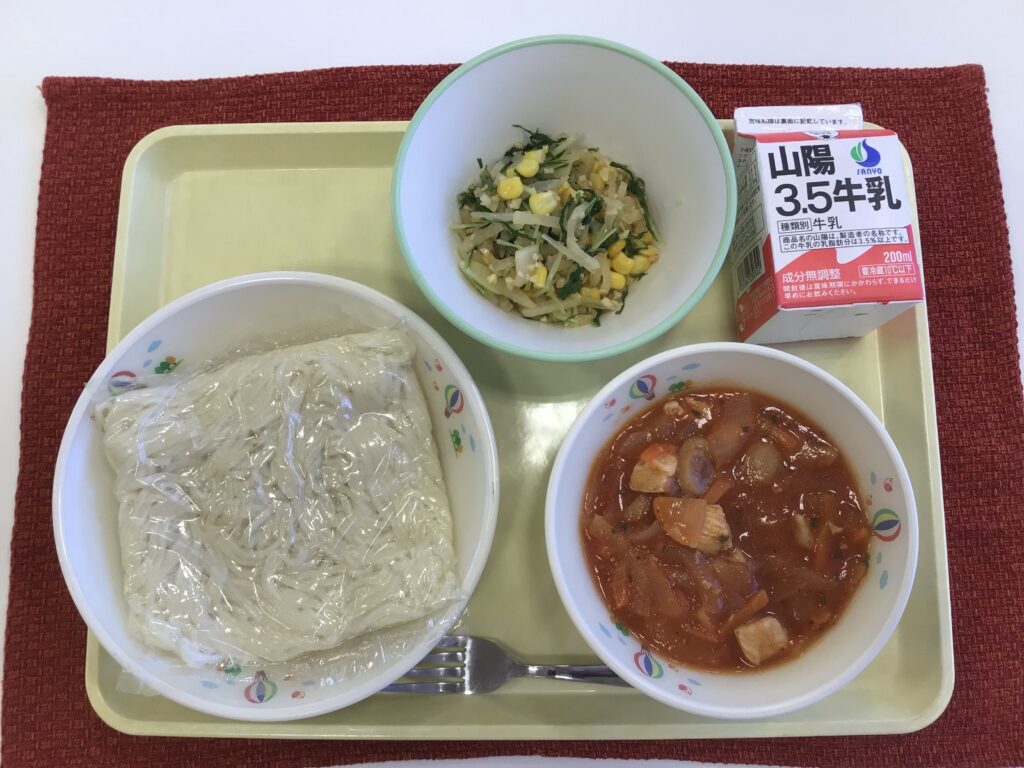ソフトめんチキントマトソース 牛乳 大根サラダ