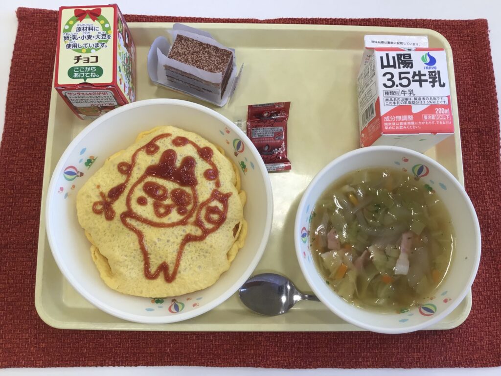 オムライス 牛乳 コンソメスープ クリスマスケーキ