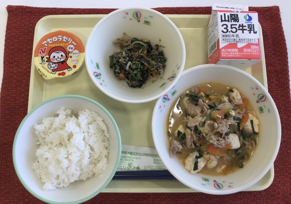 ごはん 牛乳 豆腐チゲ ナムル アセロラゼリー