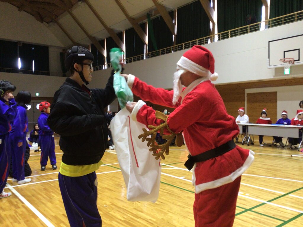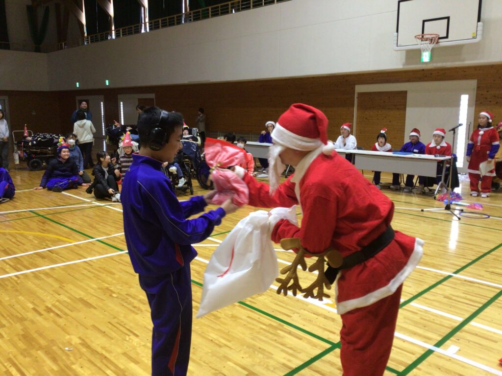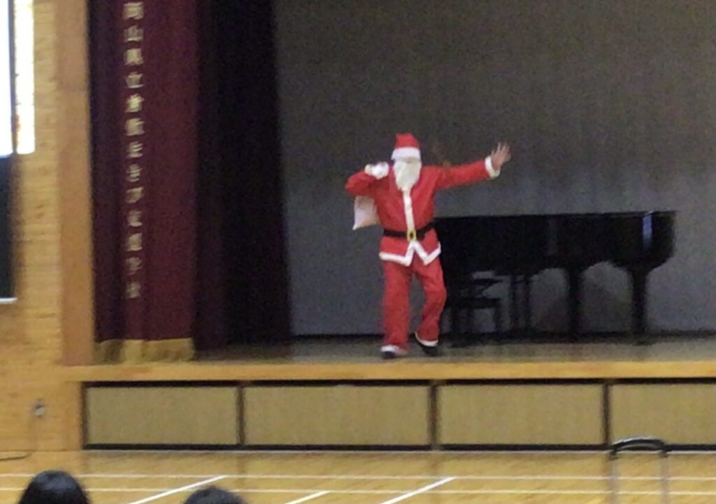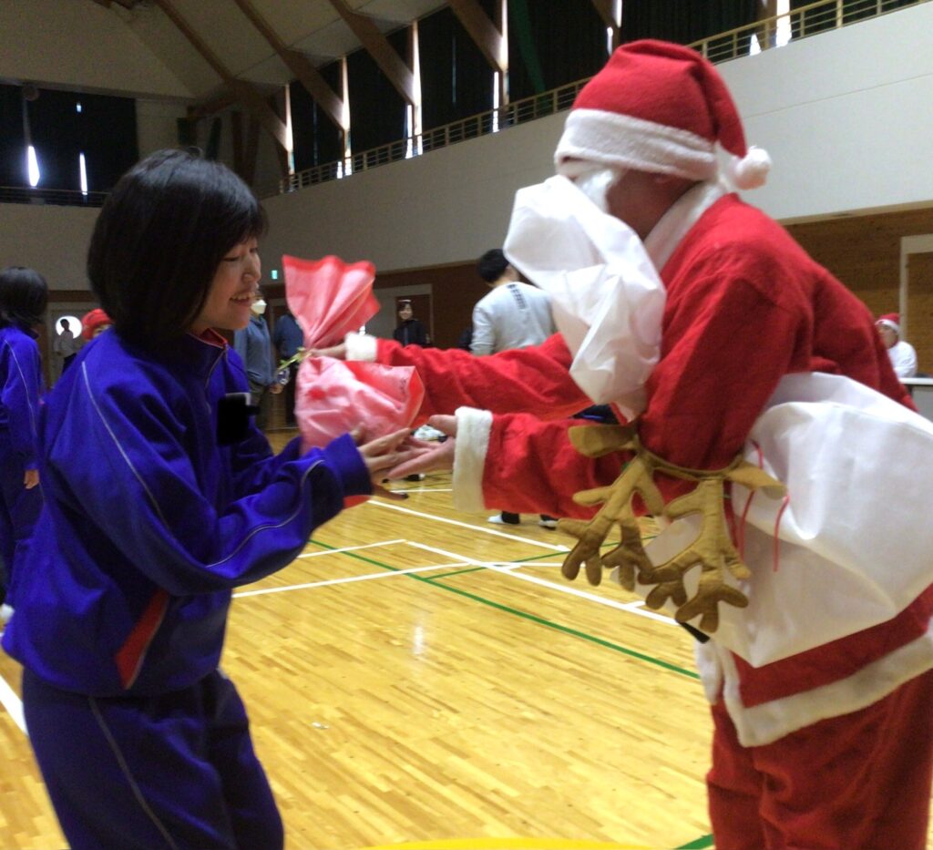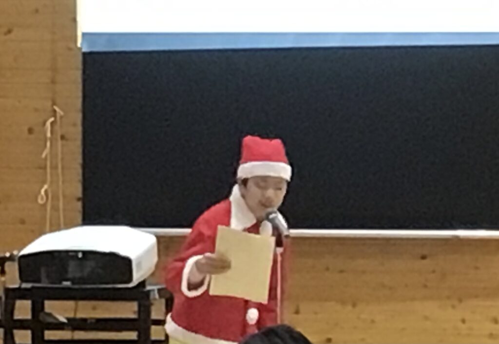 12月18日に、A中・B中合同でお楽しみ会がありました。生徒会主催の⚪︎×クイズや、各学年・B中の出し物で楽しいひと時を過ごしました。そして、楽しみにしていたサンタクロースの登場にみんな目を輝かせ、プレゼントを手渡してもらいました。