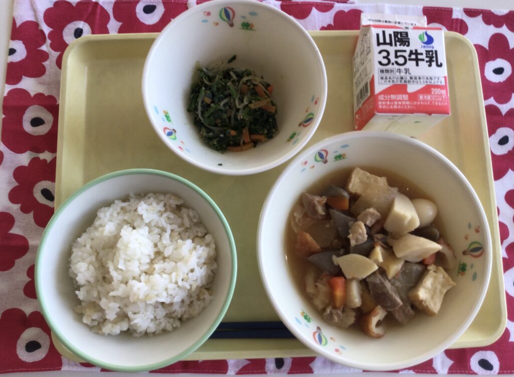 玄米入りごはん 牛乳 おでん ほうれん草のごまあえ
