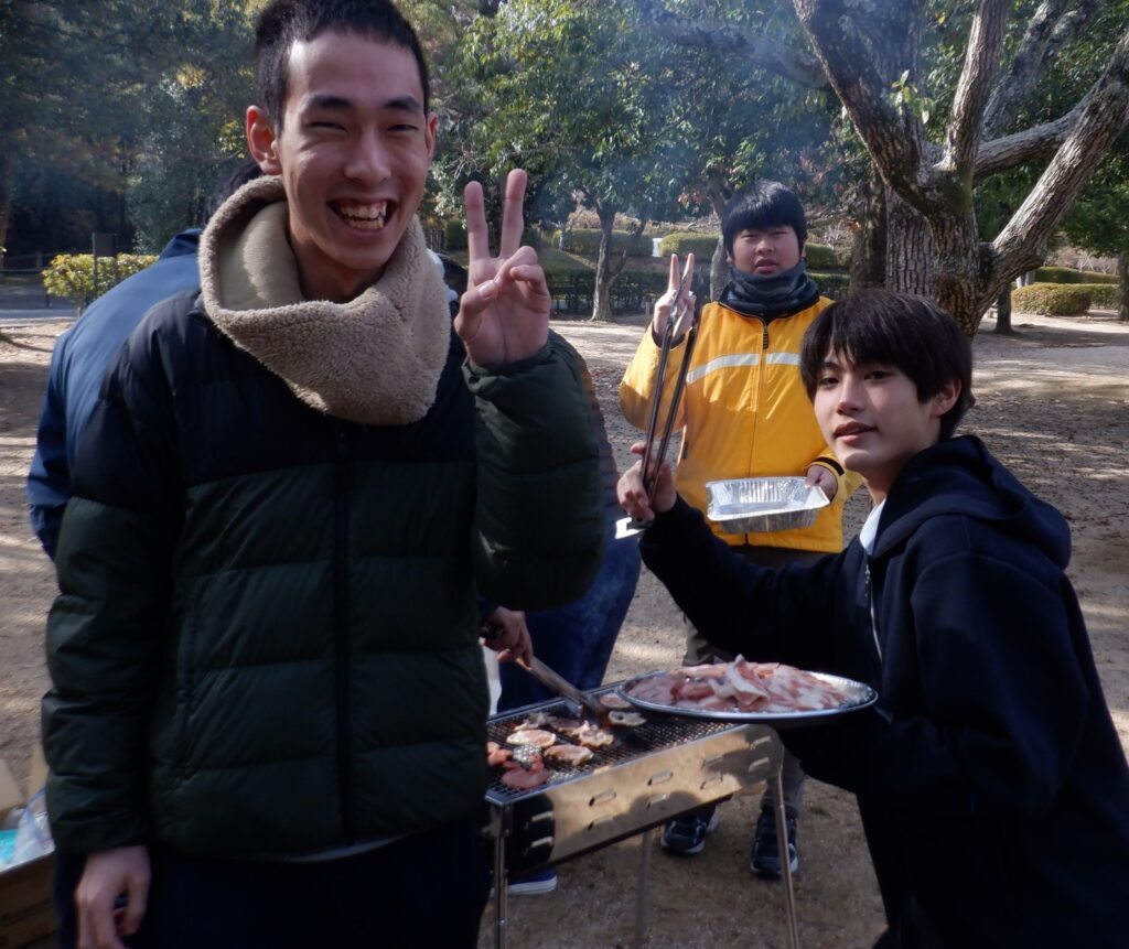 さあいよいよバーバキュー。お肉以外にも、アヒージョや焼きそば、ベーコン巻きなど、班ごとに計画した美味しそうな料理がたくさん。