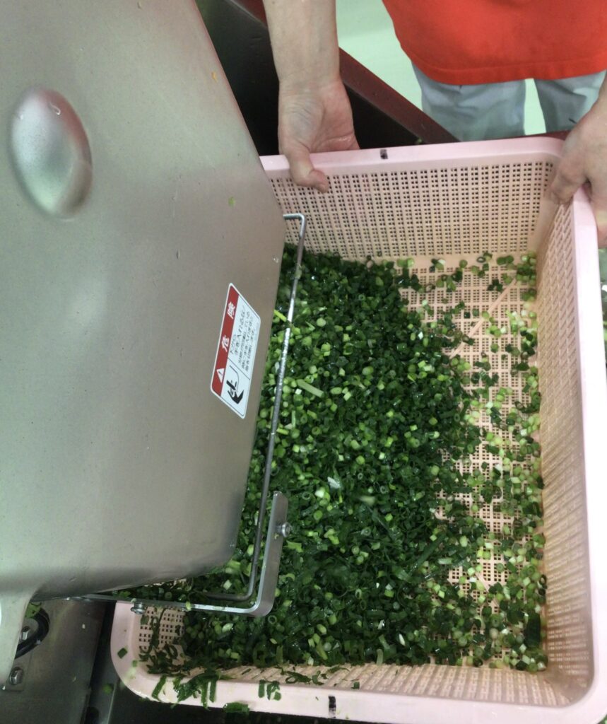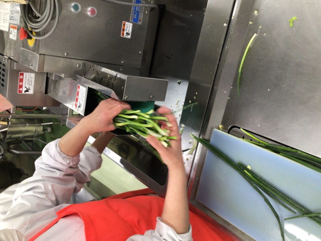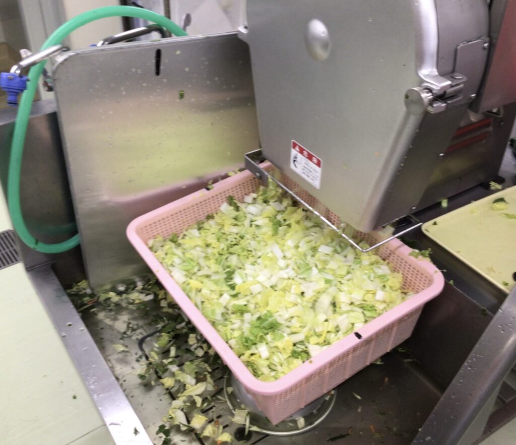 にんじん、だいこん、白菜、ねぎは、スライサーという機械を使って切ります。