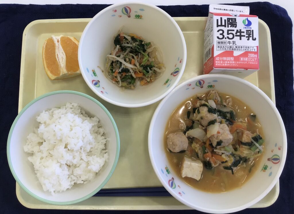ごはん 牛乳 キムチ鍋 ナムル いよかん