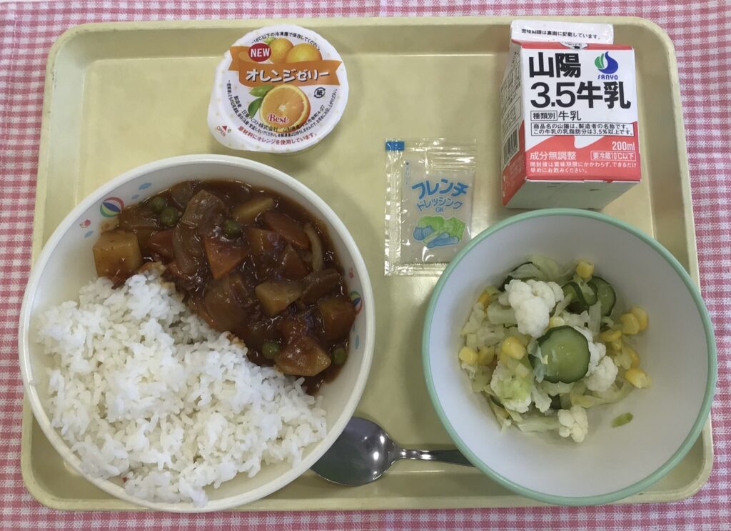ハヤシライス 牛乳 フレンチサラダ オレンジゼリー