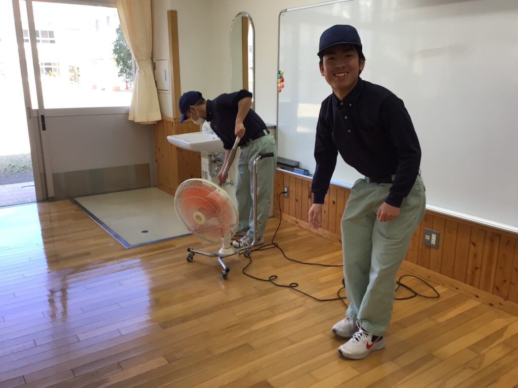 環境サービスコースの2年生は、お世話になった教室をきれいにし、ワックスがけを行いました。みんなで役割を分担し、手際よく作業を進めていきました。ワックスがけが終わった教室は、見違えるほどピカピカ!来年度、気持ちよく使用できそうです。