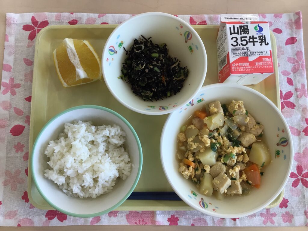 ごはん 牛乳 親子煮 ひじきとちりめんの和え物 美生かん