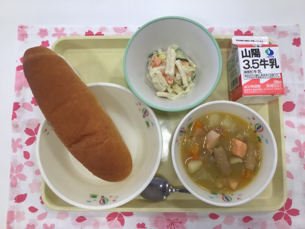 米粉パン 牛乳 ブイヤベース マカロニサラダ