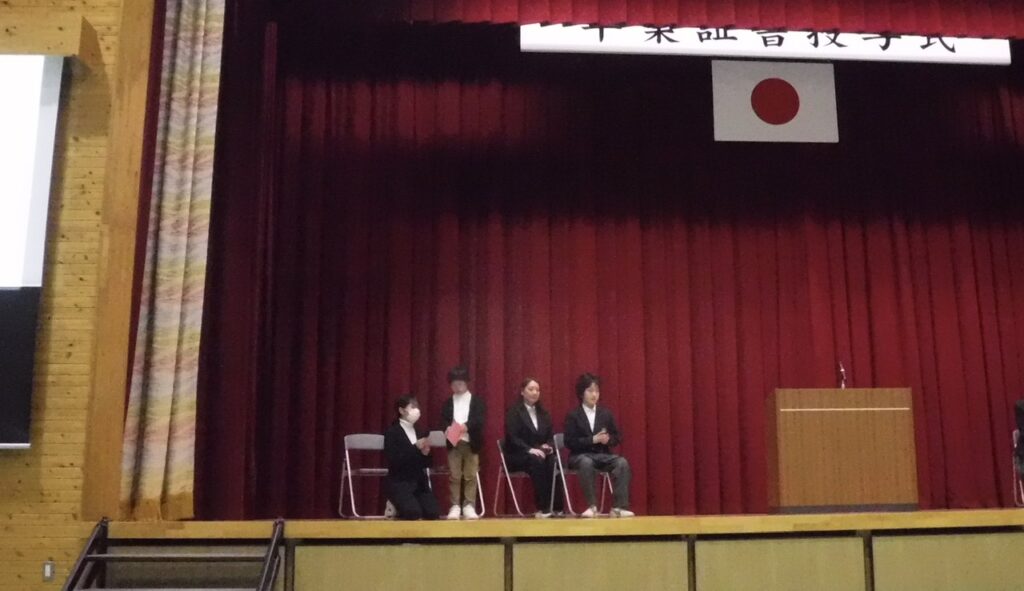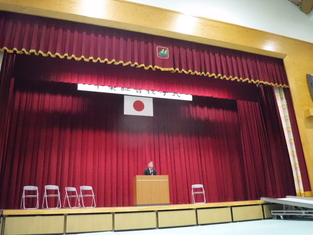 全校生徒が体育館に集まって令和7年度修了式が行われました。