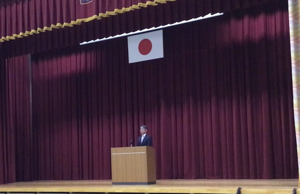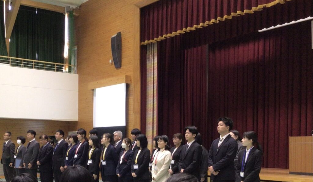 本日、 体育館に全校児童・生徒が集まり、 令和8年度着任式・始業式が行われました。
