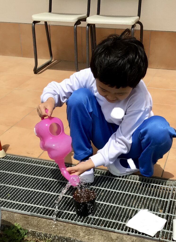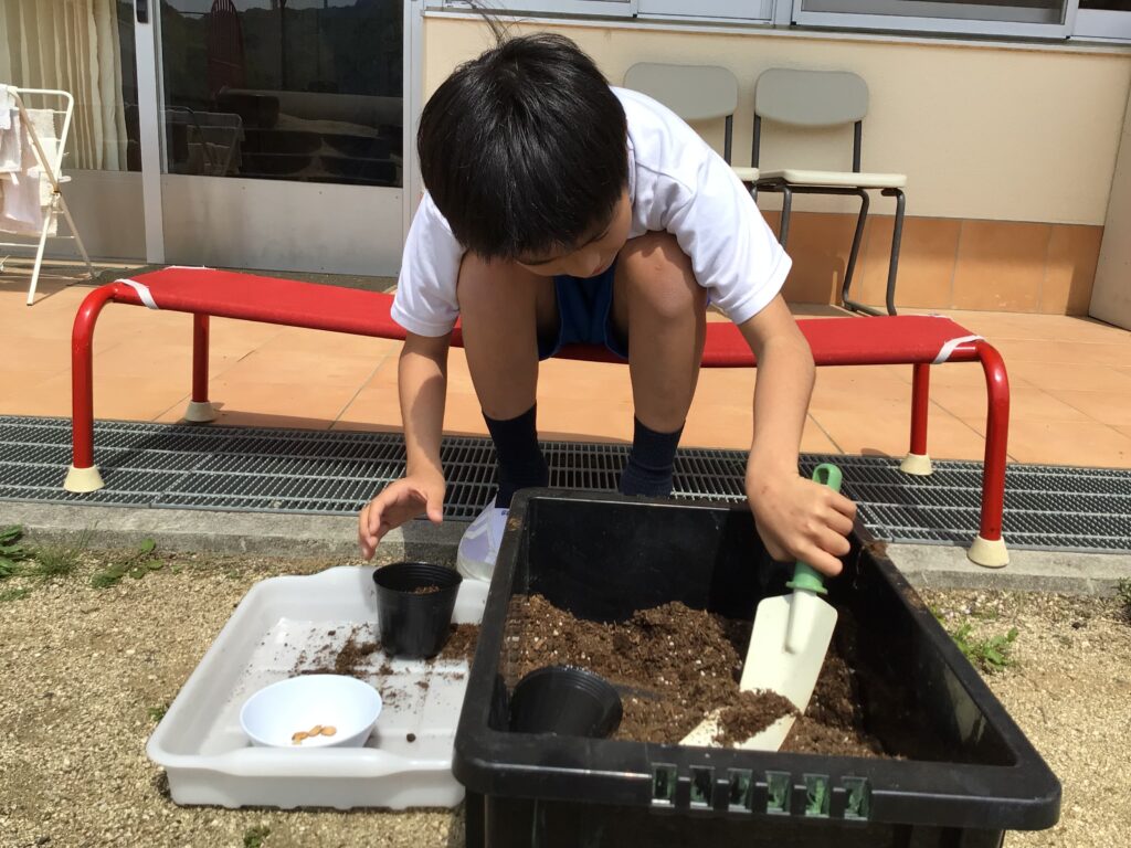 生活単元学習でゴーヤの種を植えました。動画で確認した手順通りに植えることができました。